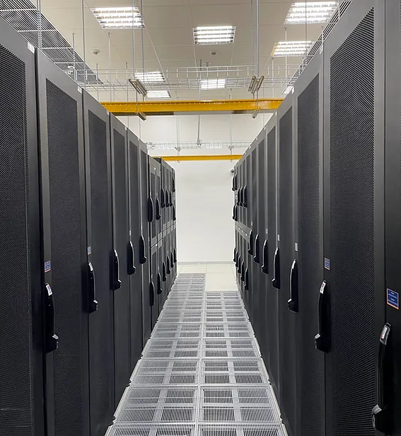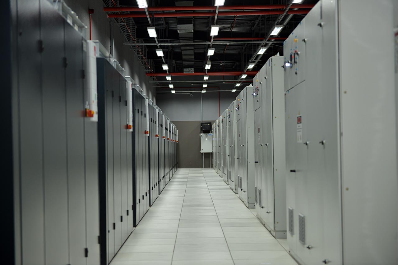 Subestação própria redundante tri-bus, com três linhas de energia abastecendo cada módulo. Grupo gerador a diesel com autonomia de 48 horas sem reabastecimento.